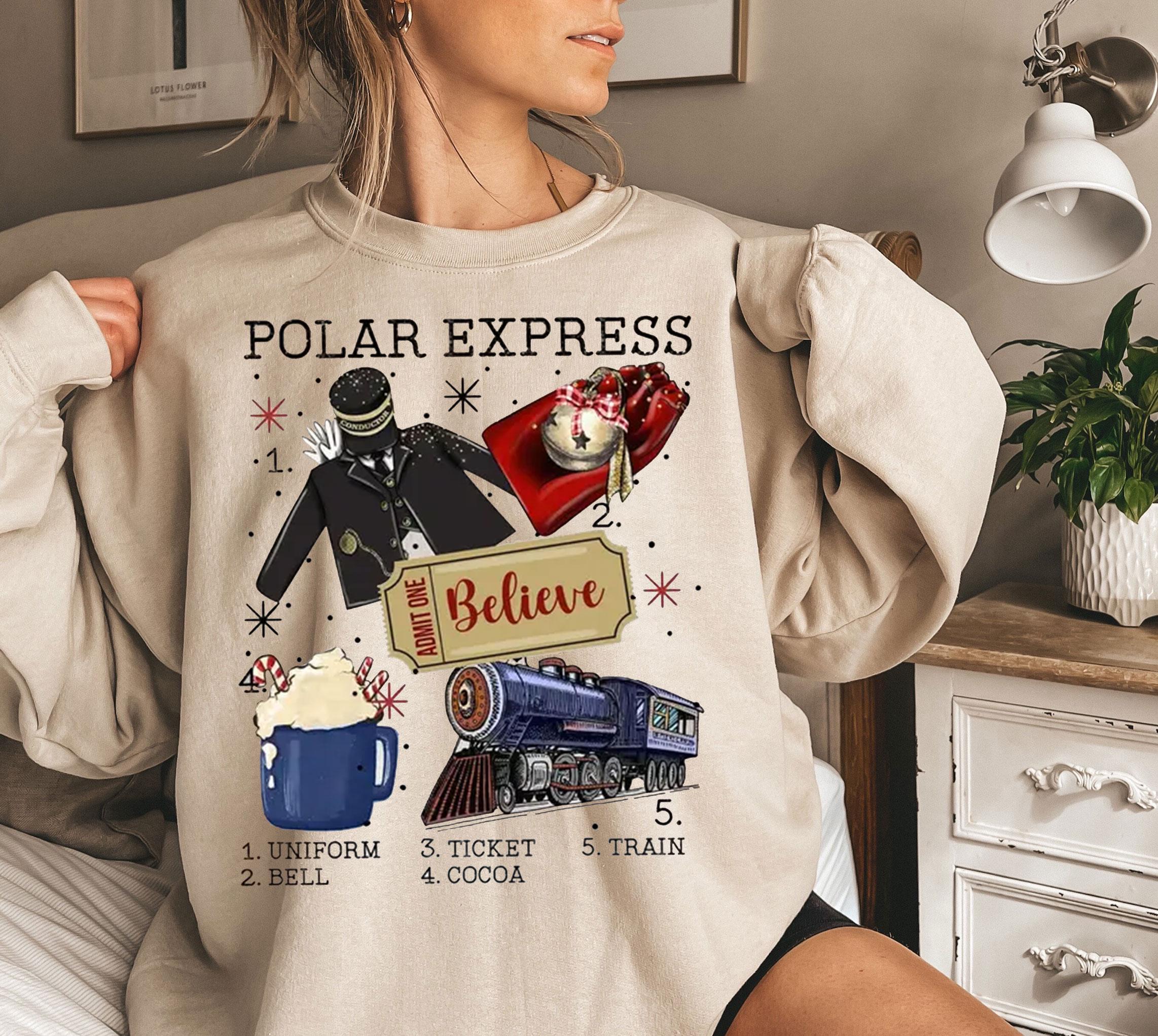 Believe Polar Express Sweatshirt – Christmas Family Vacation Tee – Kids Christmas Apparel – Holiday Polar Express Shirt