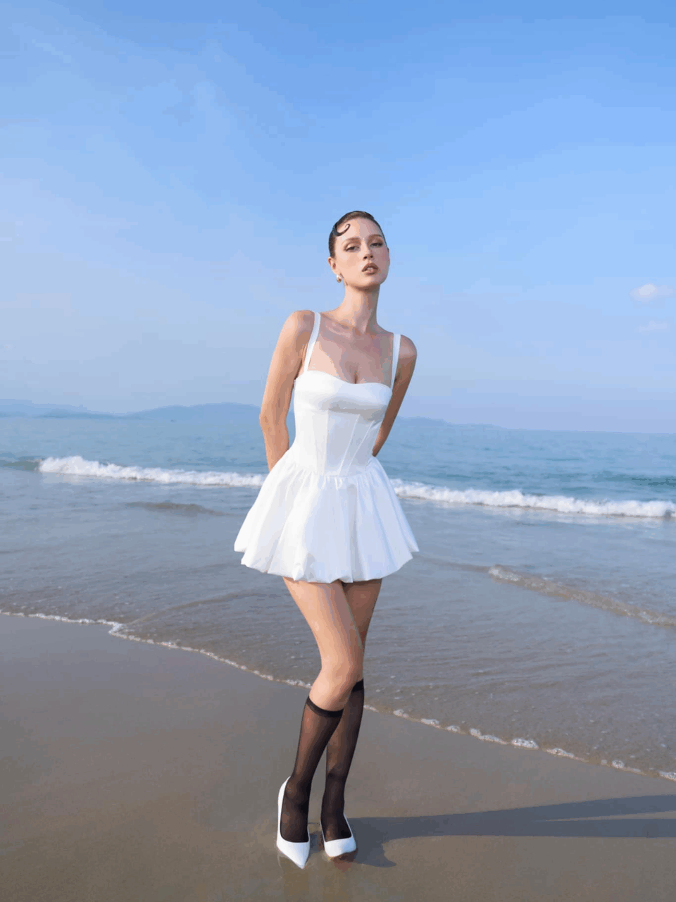 White Satin One-Shoulder Mini Dress “Ocean Rose”