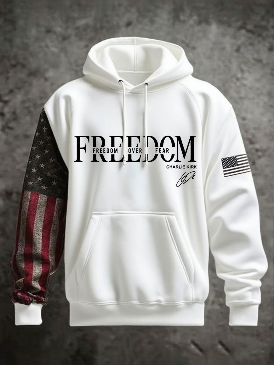 Charlie Kirk Hoodie Freedom Over Fear Signature CK USA Flag Merch Gifts For Supporters
