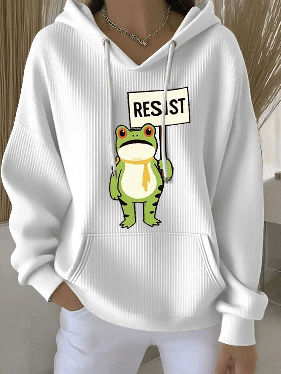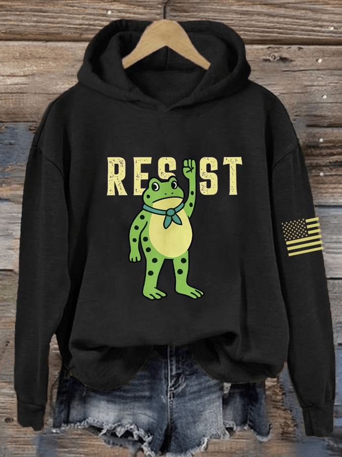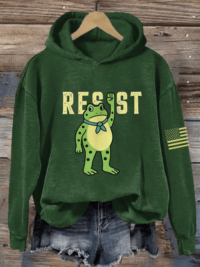 Portland Frog Print Casual Hoodie Resist Hoodie Gift for Democrats Supporters