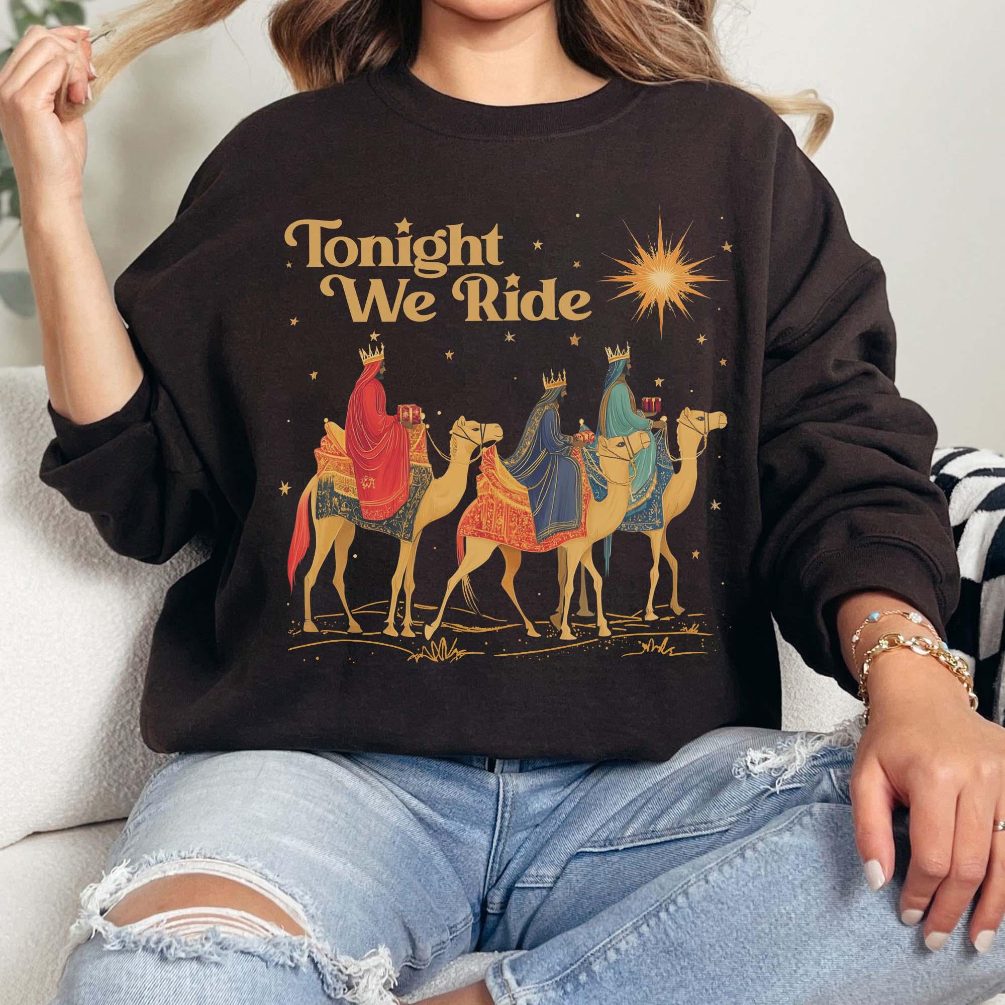 3 Wise Men Tonight We Ride Christmas Sweatshirt – Religious Nativity Christian Sweater – Faith Christmas Shirt