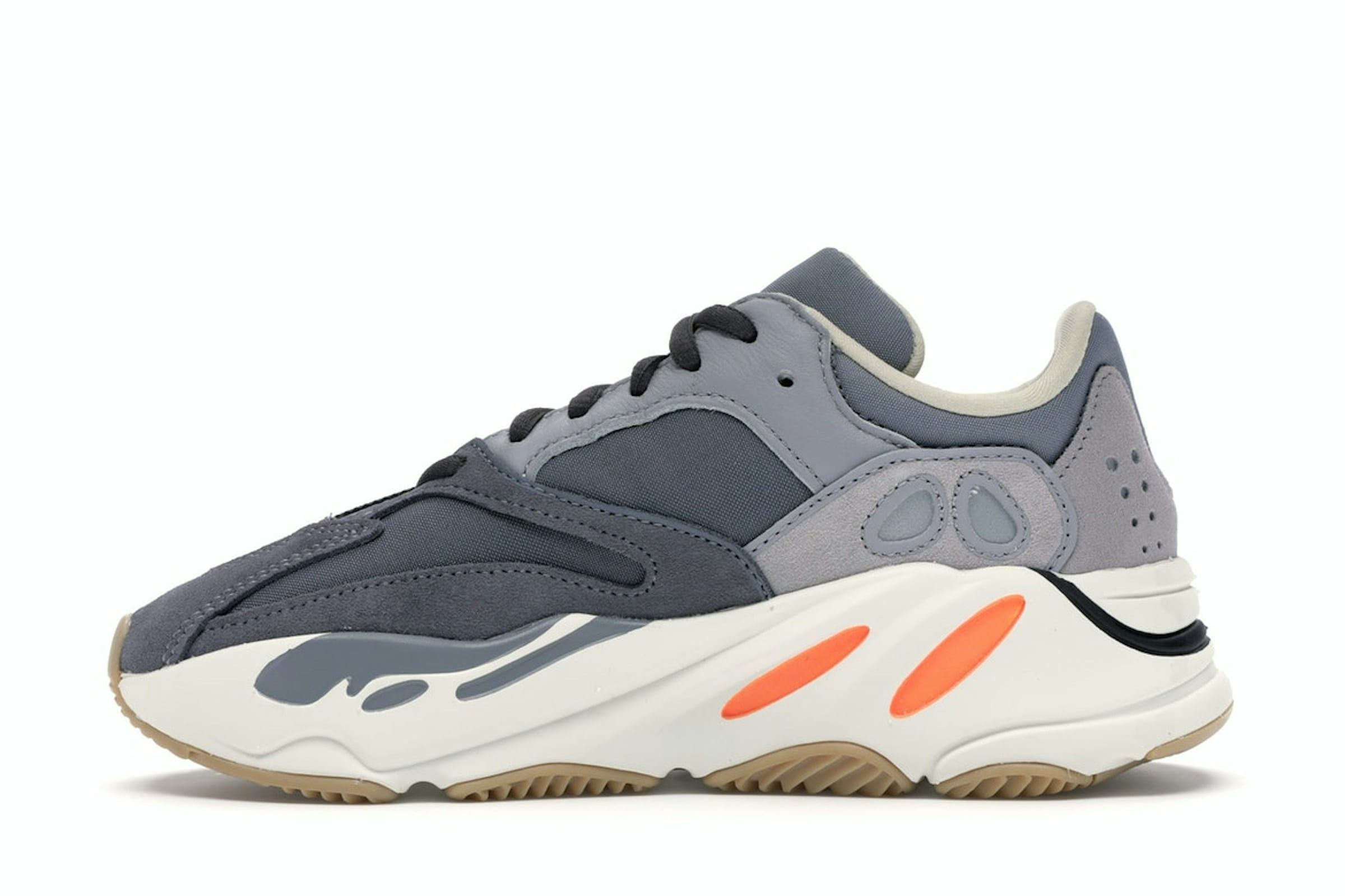 The design of the Adidas Yeezy Boost 700 Magnet Sneakers is further elevated by its attention to detail. Reflective accents are strategically placed to catch the light, adding a dynamic element to the overall look. The durable rubber outsole ensures excellent traction on various surfaces, making these sneakers as practical as they are stylish.