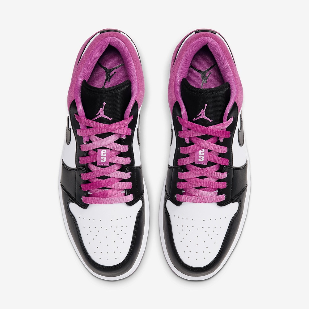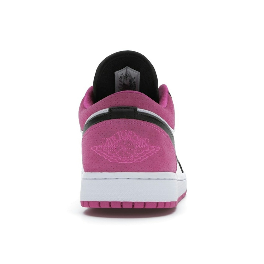 This special edition features a black leather upper with white side panels, highlighted by iridescent fuchsia/Aurora Green accents on the toe box, Swoosh, and heel. The Air Jordan 1 Low SE ‘Fuchsia’ delivers a bold, eye-catching aesthetic, blending classic design with a dynamic, color-shifting finish. Step into a unique icon that truly pops!