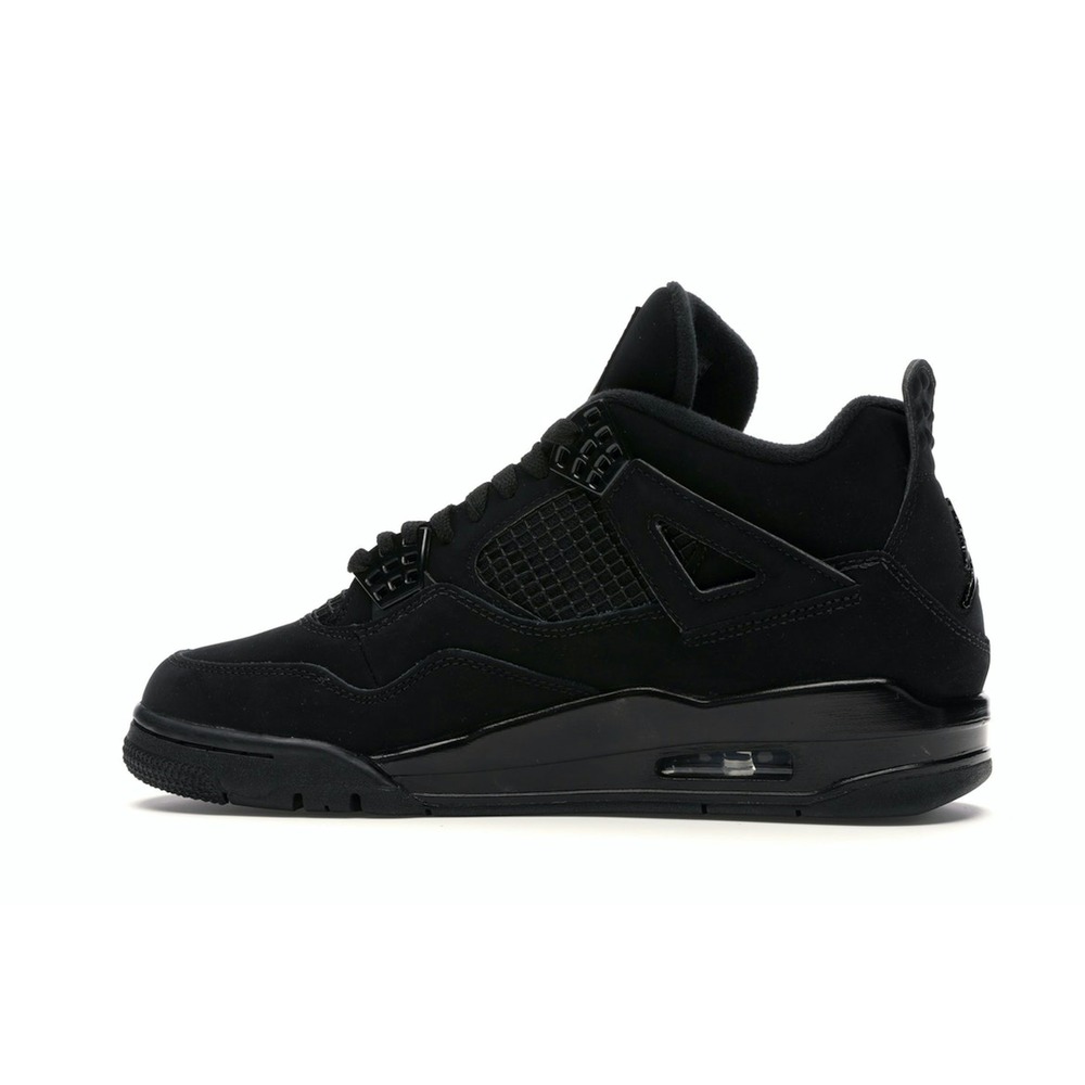 The iconic Air Jordan 4 Retro ‘Black Cat’ (2020) features a sleek, monochromatic black nubuck upper extending across the entire silhouette, offering a premium and versatile look. This highly sought-after edition delivers a bold, understated aesthetic, blending luxurious materials with the legendary AJ4 design for supreme comfort and undeniable street appeal. Step into timeless cool with this essential, all-black statement piece.