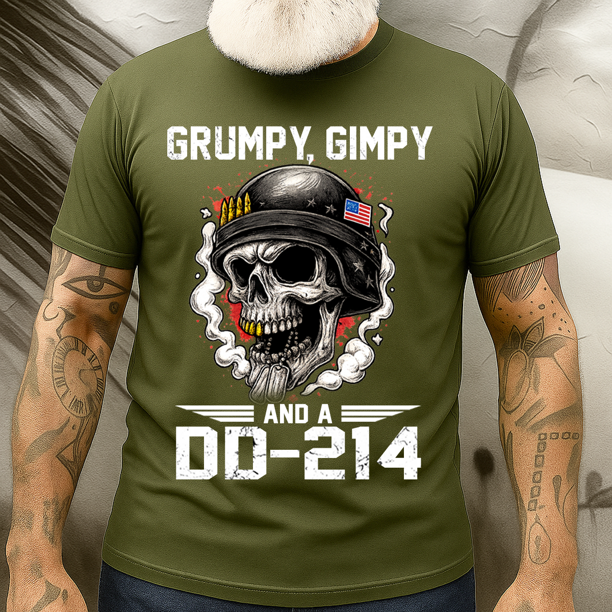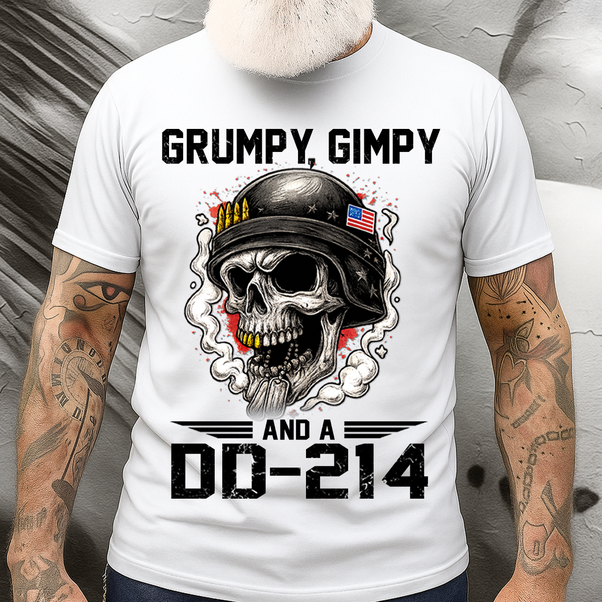DD-214 Veteran Humor Shirt Skull Military Tee Patriotic Gift for Veterans