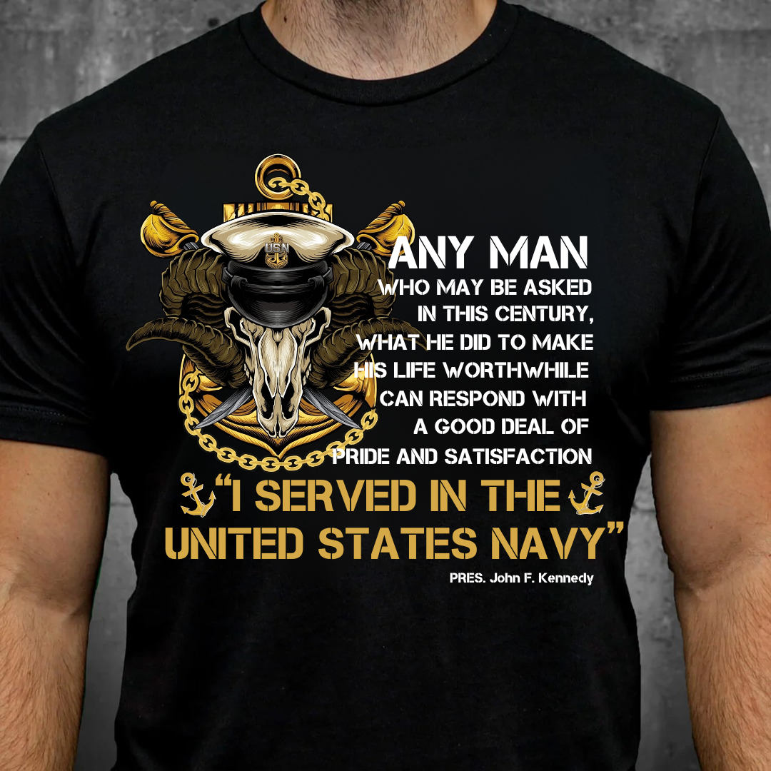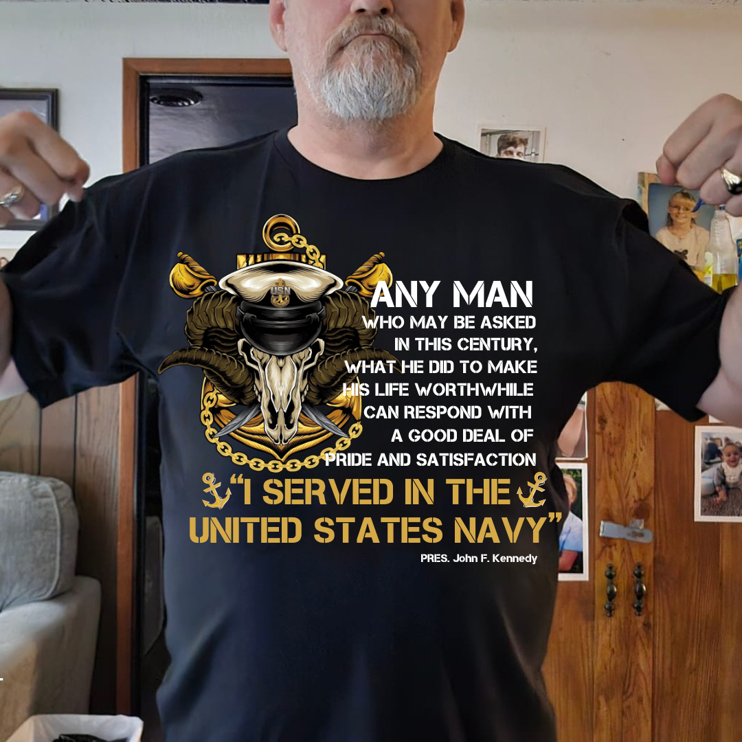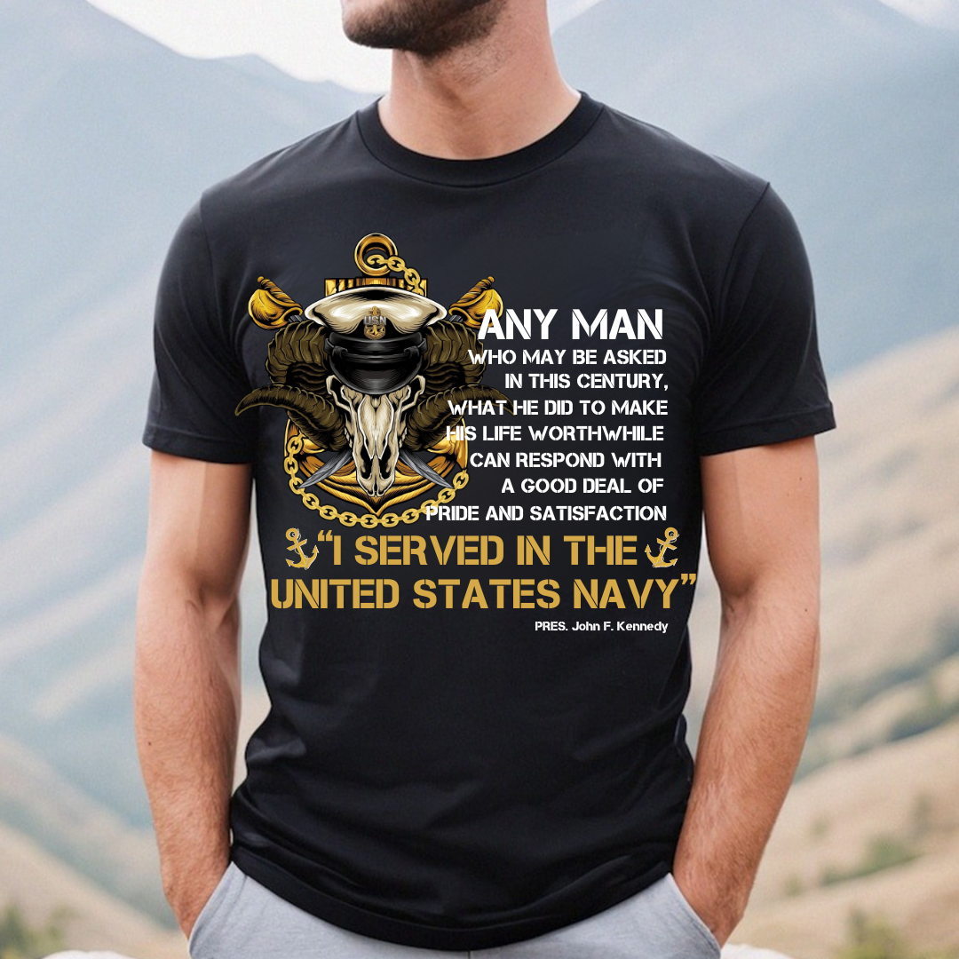 “I Served In The United States Navy” T-Shirt US Navy Skull Design Gift for Veterans Day