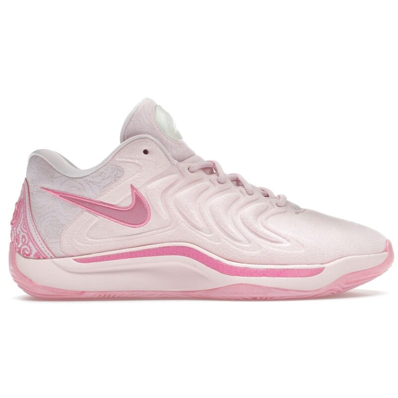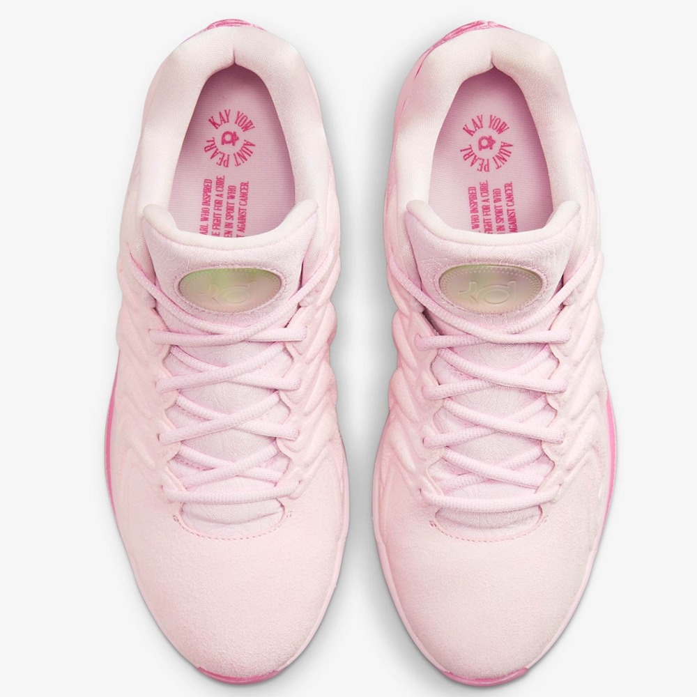 Product Highlights: A special edition sneaker to honor the memory of his late Aunt Pearl, who passed away from cancer. Intricate detailings on the performance sneaker is constructed with a combination of textiles and other materials, including molded side panels, offer a unique texture and look. The textile upper is designed to be lightweight and breathable, helping to keep the wearer's foot cool and comfortable during intense basketball play. A responsive cushioning system blends a Zoom Air unit in the forefoot for explosive energy return and an Air Strobel unit in the heel for comfortable, responsive cushioning throughout the foot. A rubber outsole that has a topographical map-like pattern with ridges and grooves, providrs reliable multi-directional traction for quick movements and cuts on the court.