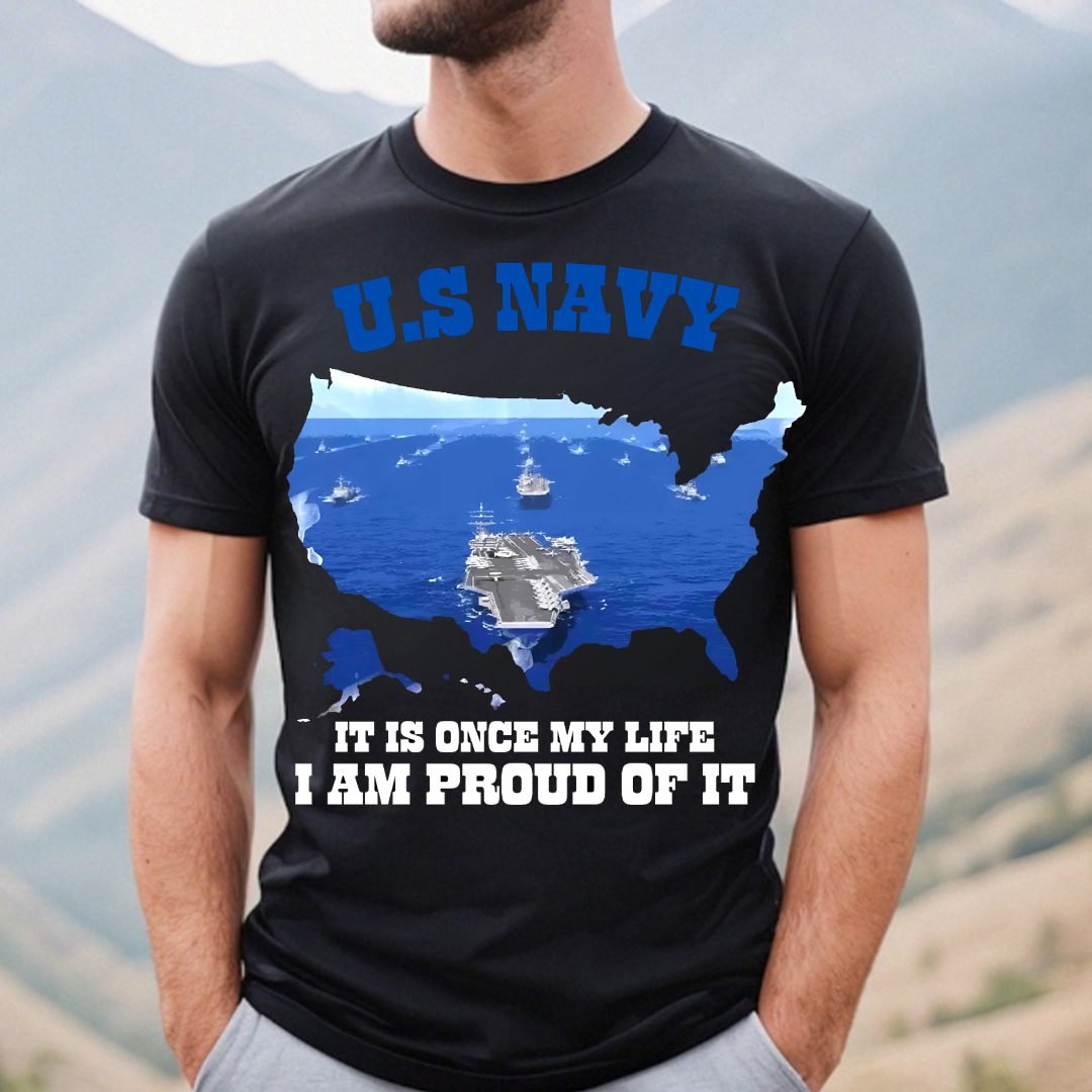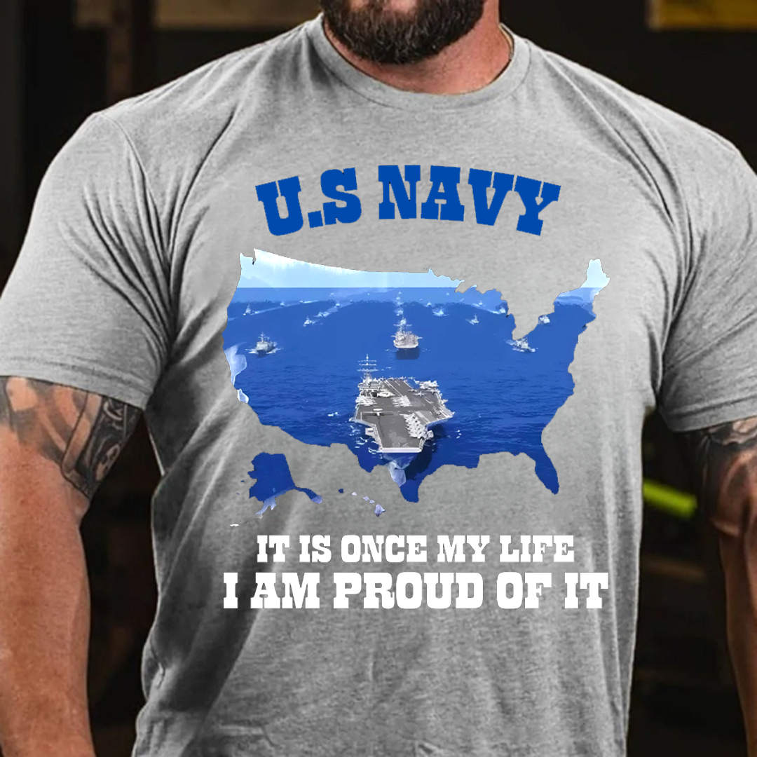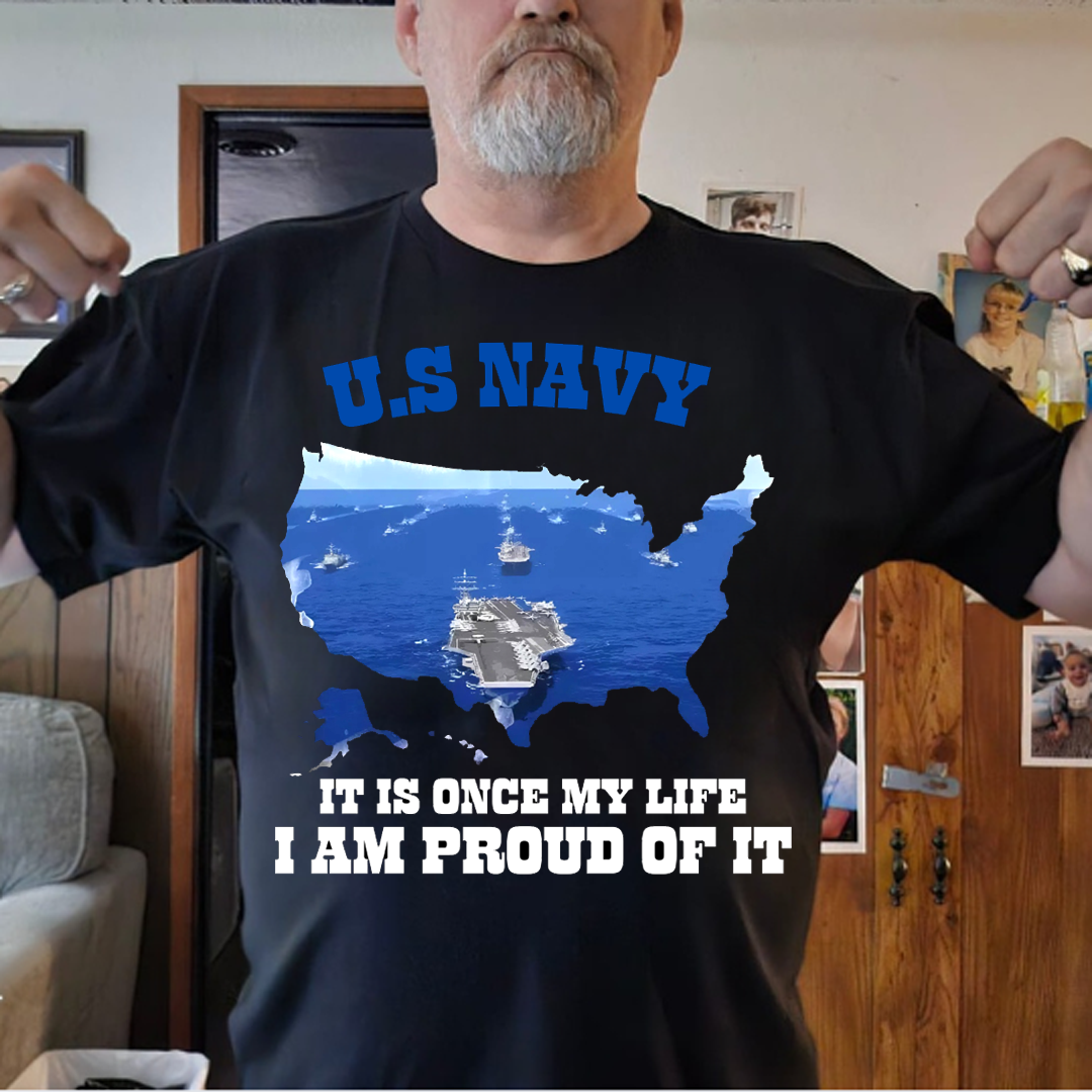 “Once My Life, I Am Proud of it” US Navy T-Shirt Navy Ship Design Idea Gift for Veterans Day